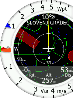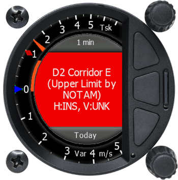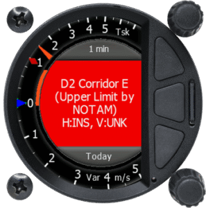 Le radar affiche toutes les données nécessaires. La position actuelle de la cible, son altitude et son variomètre sont affichés sur la carte. À chaque nouvelle alerte, une fenêtre contextuelle s’affiche automatiquement en cas de risque de collision. Le système déclenche également un avertissement sonore et vocal.