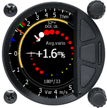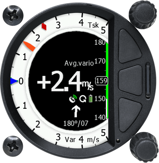 L’aiguille d’indication du vario est entièrement numérique et s’affiche sur un écran extrêmement lumineux de 2,5 pouces. Elle s’insère dans un emplacement standard de 57 mm (2,25 pouces).