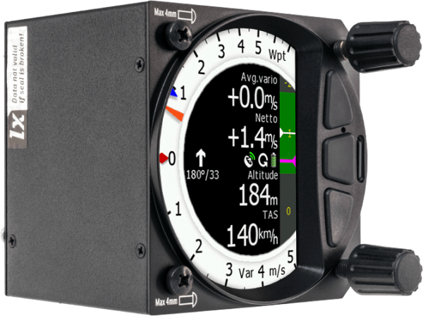 Trois capteurs pneumatiques avec compensation électronique ou TE, ainsi qu’une plateforme inertielle intégrée avec accéléromètre de +-8 g et trois gyroscopes, permettent des mesures vario rapides et des calculs de vent précis. Le logiciel AHRS (option) permet d’afficher graphiquement l’horizon artificiel.