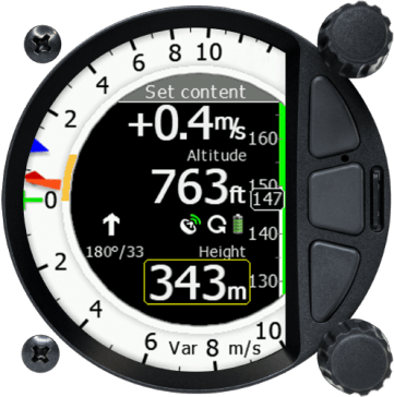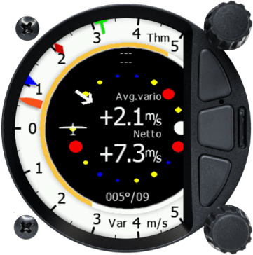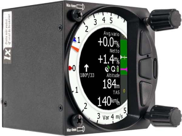 Trois capteurs pneumatiques avec compensation électronique ou TE, ainsi qu’une plateforme inertielle intégrée avec accéléromètre de +-8 g et trois gyroscopes pour des mesures vario rapides et des calculs de vent précis. L’option logicielle AHRS permet d’afficher un horizon artificiel graphique.